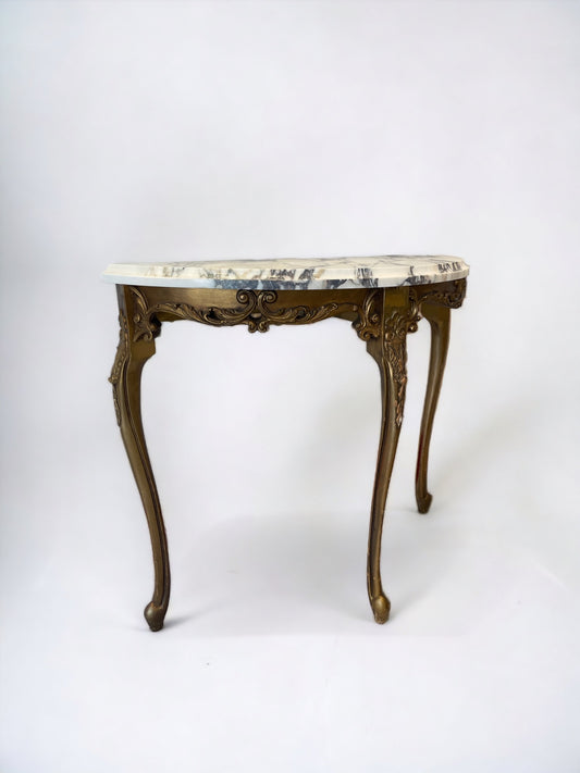 Ornate carved Gilt Demi Lune Console Table with Marble Top