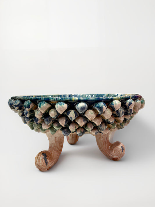 Three-Footed Pedestal Sicilian Pine Cone Bowl, Blue | Green Swirl