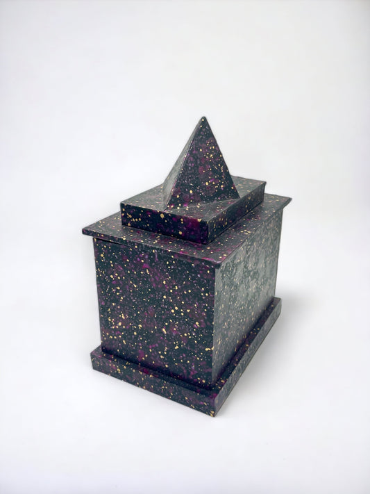 Unique Hand-Painted Pyramidal Decorative Box, Black Porphyry