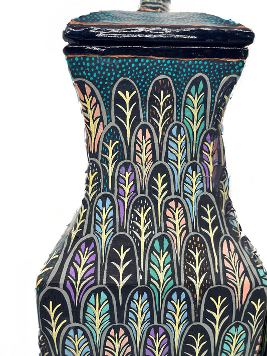 Hand-Painted Papier Mâché Pair of Jars with Leaf Motif